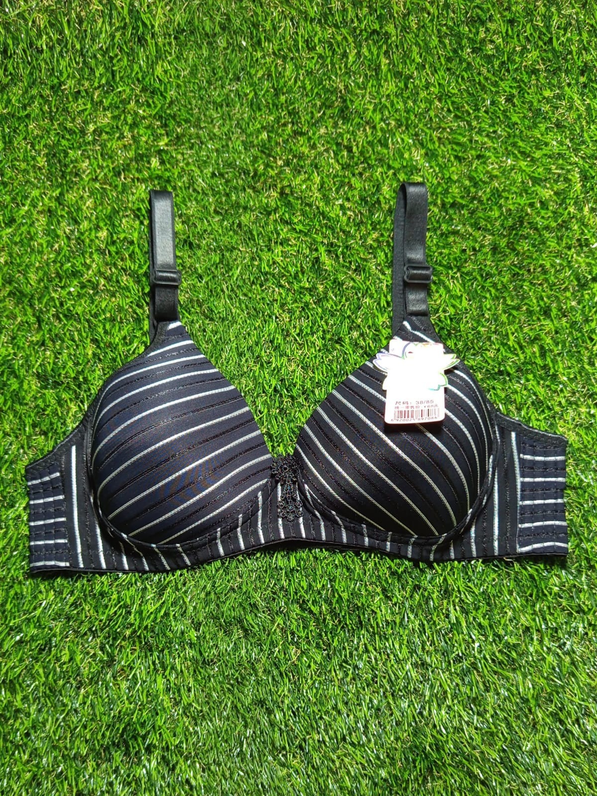 The adjustable straps allow a customized fit, making it suitable for long wear without discomfort. Featuring a modern striped pattern and delicate center embellishment, this bra combines functionality with fashion, making it perfect for both daily use and special occasions.